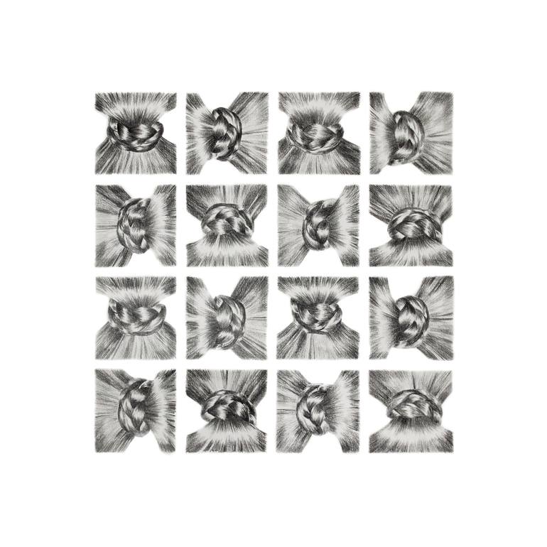The series 'Beauty Salon' is composed of drawings in which I examine the boundaries of the world of weaving by way of traditional hair braiding. In these works, hair transforms into a tapestry unfurling onto a sheet of paper. Different plaiting techniques take on a visual character interwoven with t...