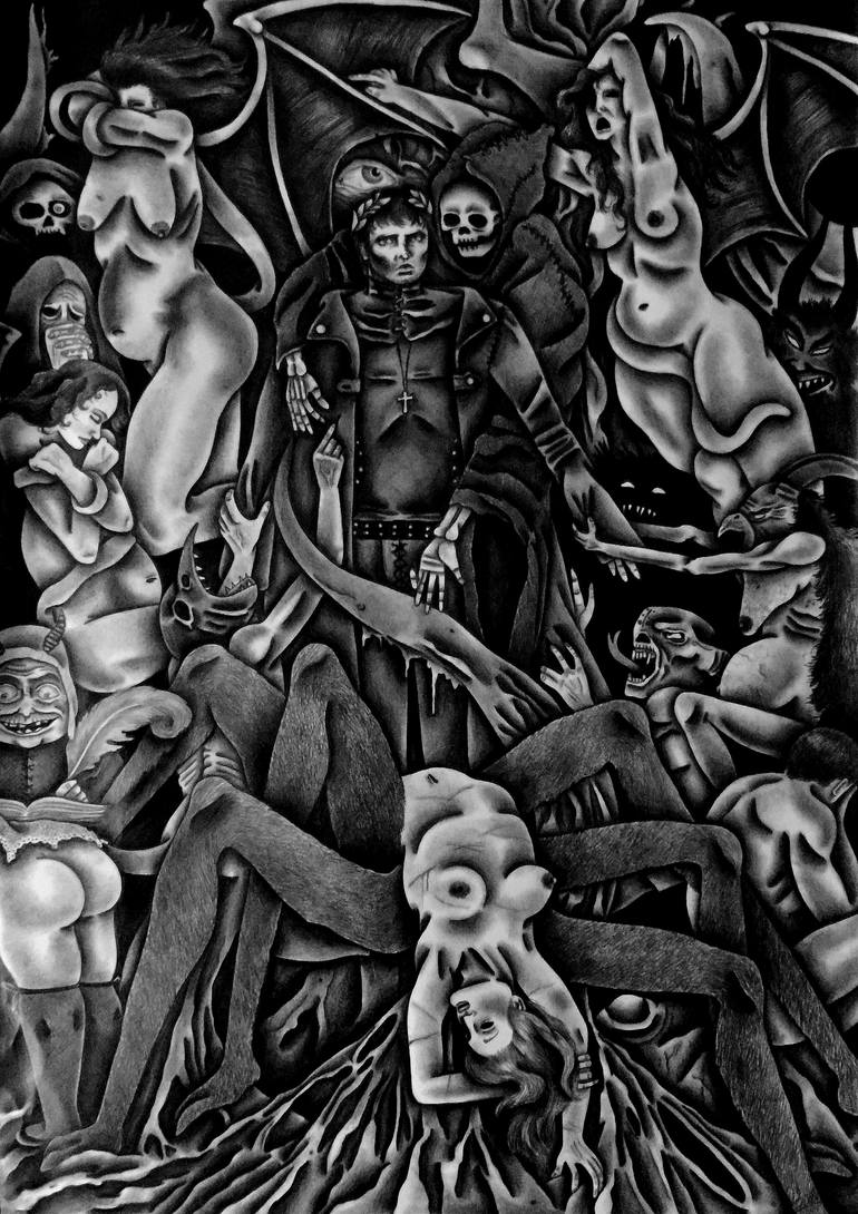 Black pencils on paper sheet Sizes: 50X35 CM Serie: Divina Commedia En medio del viaje de nuestra vida, me encontré a mí mismo dentro de un bosque oscuro en donde se había perdido el camino recto. Dante Alighieri © Celeste Gómez