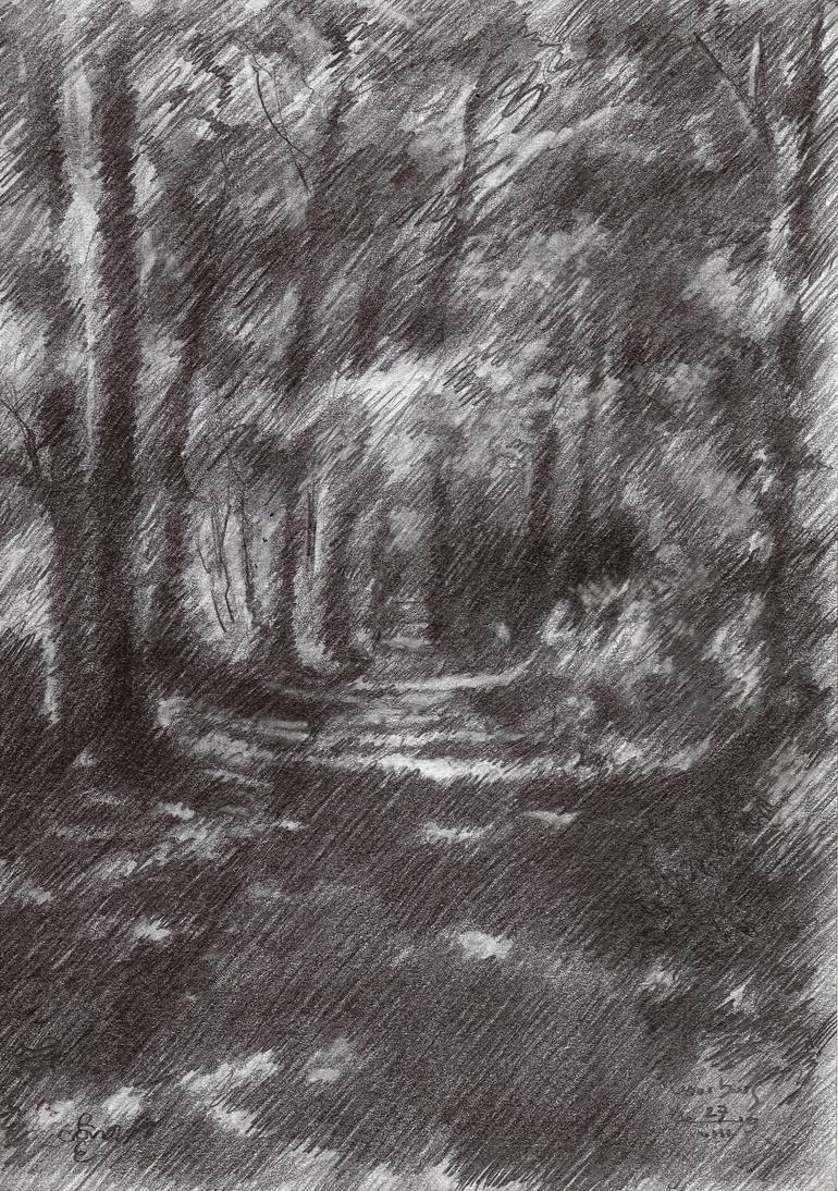 Voorburg – 27-08-19 Another drawing of a clairobscur forest lane at Park Sonnenburgh in Voorburg, Netherlands, conveniently lingering about around the corner of where I work. I kept this sketch rather rough in my typical diagonal hatched strokes avoiding lines running in the direction of the contou...
