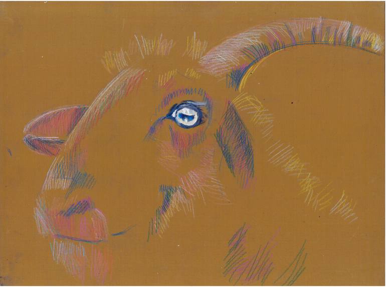 GOAT lovers ART PRINT, Original painting on canvas T.Semenets 30*40 cm 12x16in PRINT gift Colectible picture limited edition Goat Eyes ART Nice beige picture Original small Oil painting for Living, dining room. kids Set of artworks. printed in your size One of 20 art work, named "World watch yo...