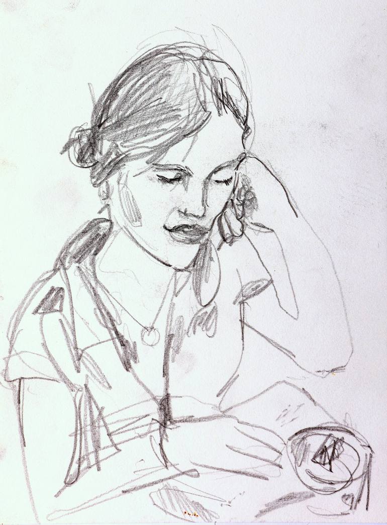 Impression from a waitress in Café from 2021, pencil on paper. This impression was done as part of a performance in Jerusalem Café Silo. In this performance, I painted and sketched the scenes and people of the location in silence - not speaking verbally but merely existing and observing the place. T...