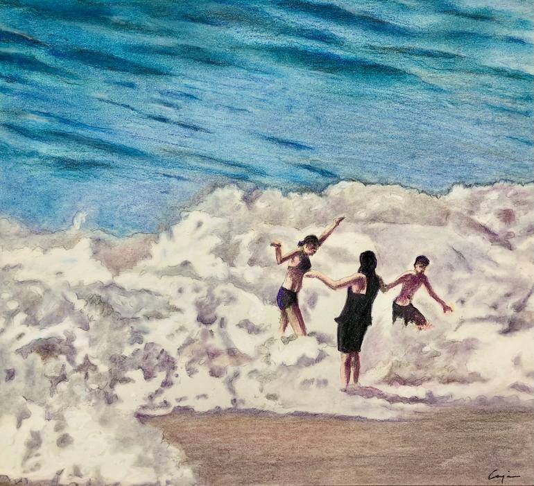 Inspired by Andrew Wyeth, this drawing was copied from my photo taken in LaJolla, CA. Hopefully, this drawing will evoke the excitement we all experience when in the surf. I rendered this piece in conte crayon which lends a softer, looser style than most of my work.
