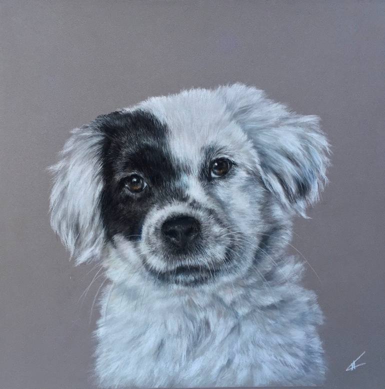 White and black puppy - soft pastel painting on Pastelmat paper will decorate your living or children's room. Has to be framed with Passepartout and glass. Colors may vary slightly on screen according to monitor settings. Thank you for taking the time to visit my gallery! If you have any questions, ...
