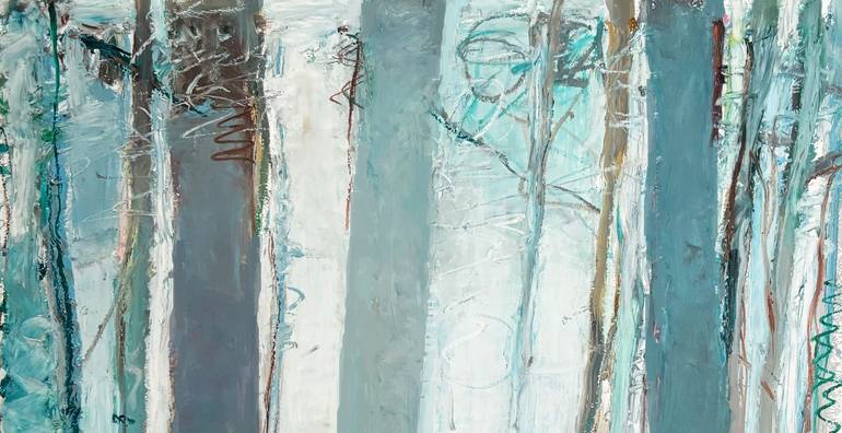 This was inspired one winter when we were out picking holly agt Christmas in Lamorran Woods in Cornwall. It was a cold misty day and the trees rose up like ghosts against a pale background. The use of oil pastel allows me to blend colours in perfectly and with a compelling effect.