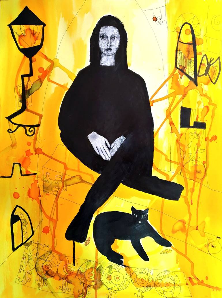 drawing ink, ecoline on paper from the serie of the women's portraits