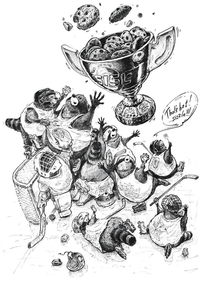 I started playing inline hockey in Bangkok - and it quickly became one of the most unexpected and joyful discoveries of my time here. The energy, the camaraderie, the slightly chaotic fun of it all… I couldn’t help but bring it into my illustrations. In this piece, raccoons throw themselves into th...