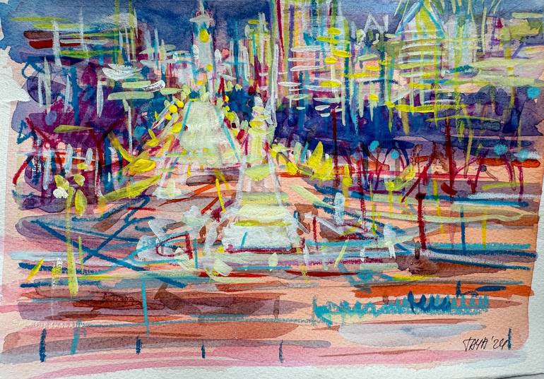 Yellow city lights Drawing
