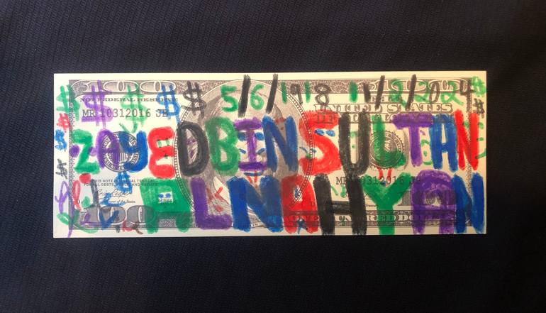 This was made to honor "Zayed Bin Sultan Al Nahayn" with writing of his genius birth on 5/6/1918 and the day he passed away sadly on 11/2/2004. The 2004 is written as 2024 and looks at how the development of Dubai has built world tourism. He is the founder of the United Arab Emirates. "AS THE ARTIS...