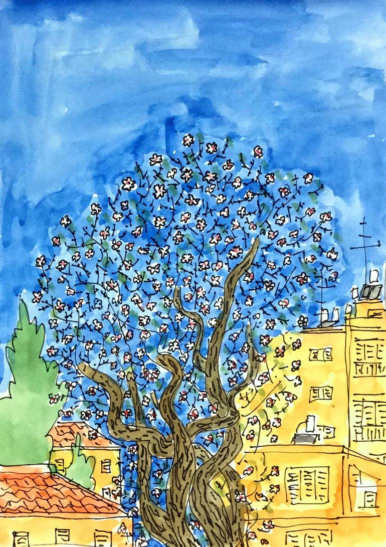 as part of my daily sketches , most of them done in the city i live in , i look for interesting things. one of them is the almond tree , growing in a place not yet sold, and so it can keep on blossoming. every year i think it is the trees last year , but not this year. it is now in the mid stage of ...