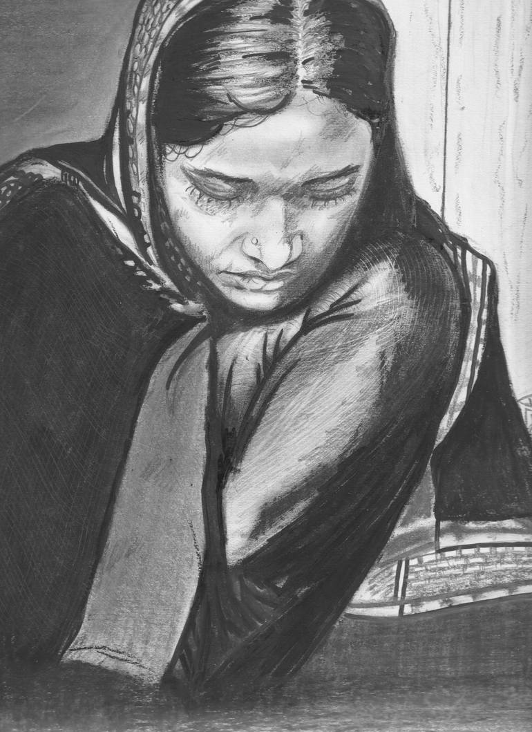 lovely girl working at fathers store, calm place some time staying alone gives pace. i draw this with pancil and oil pastel fast to work on.