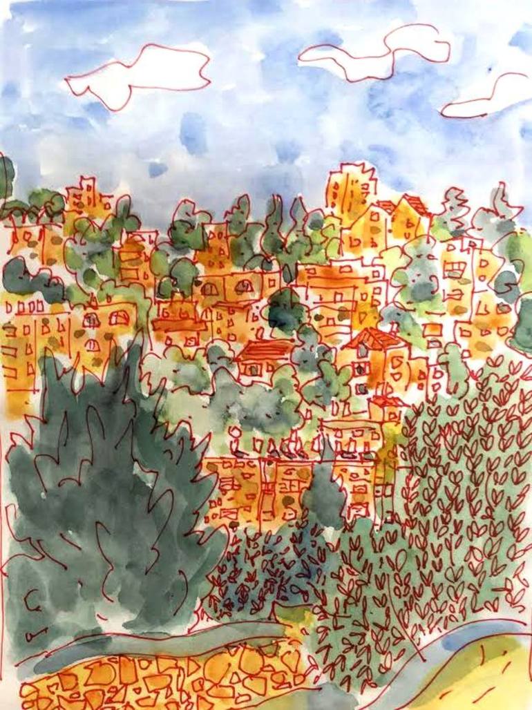 everytime i visit jerusalem i take time to do some sketches. jerusalem is an acient - modern city , it's landscape diverse - old and modern. this sketch is of the new jerusalem, built in the 60's and 70's