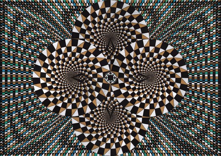 I am an optical abstract artist with a rather unique twist. I have studied and practiced this teqnique of drawing for ten years, with the guiding principal that a human being can rival computers in this style af art,and although a computer is a great and powerful tool for creation, an artist with great control and patience should have the skill to create this kind of art without a computing tool. the mind works in a geometric way to reason,and create new ideas.