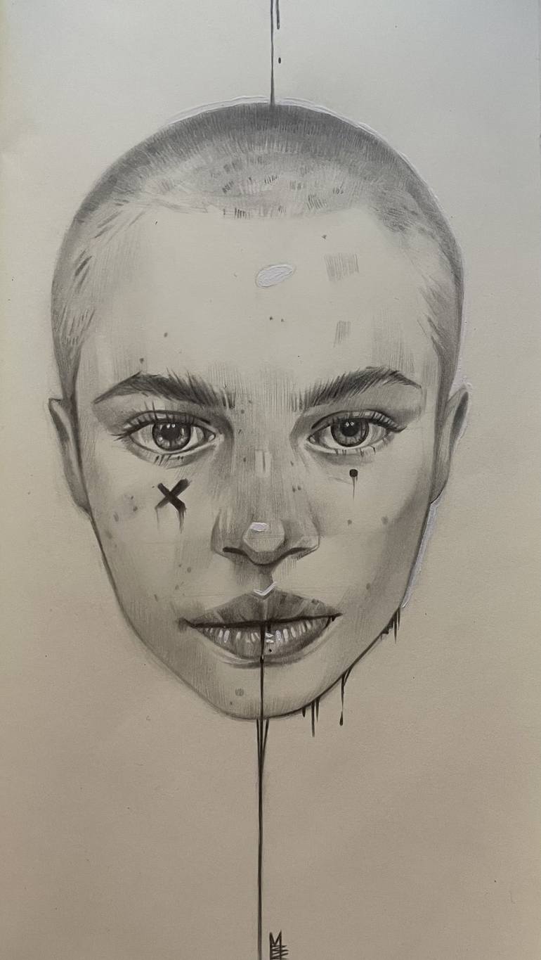 portrait of a girl made in pencil,with graphic accents