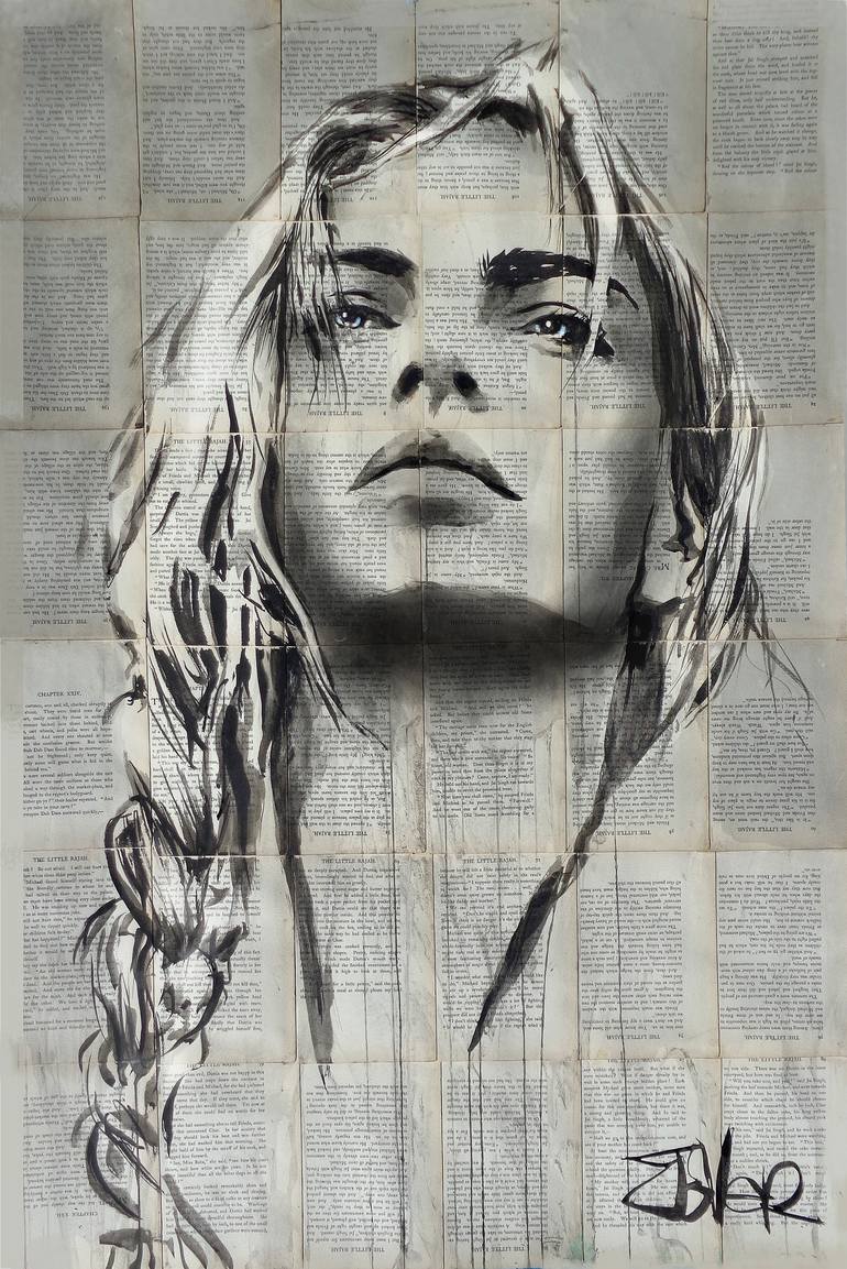 sumi ink and gouache on vintage book pages adhered together to create one sheet ready for framing as desired, part of an ongoing series of works created over the past eight years featuring women and their emotions.. very popular with collectors worldwide, I am the ''original'' creator of this genre,...