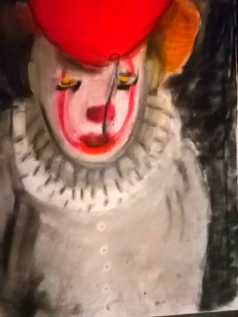 the work was inspired by the movie IT as i am a fan of horror movies. i hope it will bring a feeling of excitement to the viewer. i specalise in pastel and charcol which is what the clown is done in although there is a layer of paint under the pastel