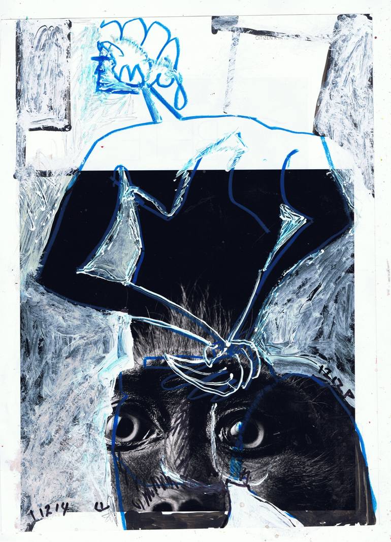 nude figure/back blk/white-eyes in butt-mix media-paper/journal-9x12in
