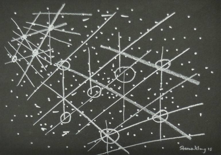 star sign drawings on black paper. piece from the planet laboratory installation 2018. titled and signed 2018.