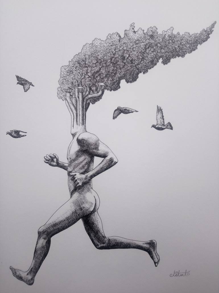 This work entitled "the running man" draws its inspiration from the chimneys of Paris, and from the machine man of the modern world running against time. The smoking head ready to explode, like a time bomb. Faced with the absurdity of today's society, where the human condition falls on us at a frant...