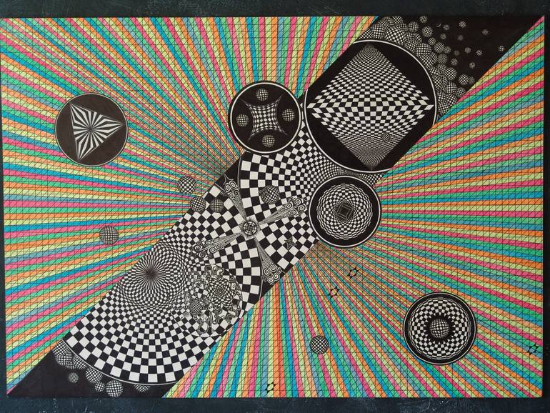 I am an optical abstract artist with a rather unique twist. I have studied and practiced this teqnique of drawing for ten years, with the guiding principal that a human being can rival computers in this style af art,and although a computer is a great and powerful tool for creation, an artist with great control and patience should have the skill to create this kind of art without a computing tool. the mind works in a geometric way to reason,and create new ideas.