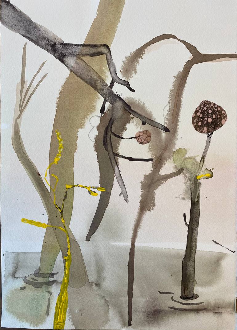 Nature is my big inspiration. we know so little about plants, and this knowledge make me think about their secret lives. In the atmosphere of the drawing I try to express this feeling of secret plant-life. By using watercolors in a intuitively way, combined with my own made detailed pigment-transfer...