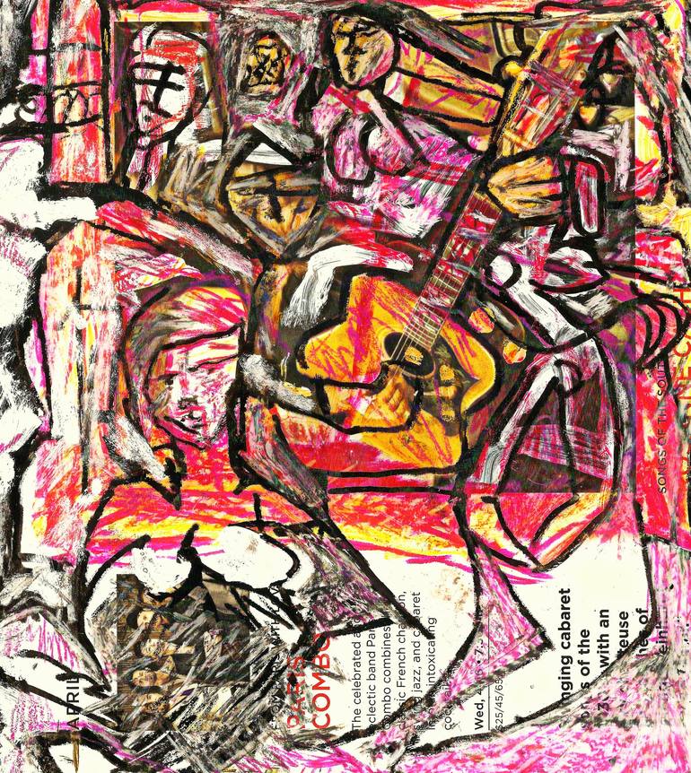 mix media-paper journal page-9x12in-figures playing music-singing-dancing-