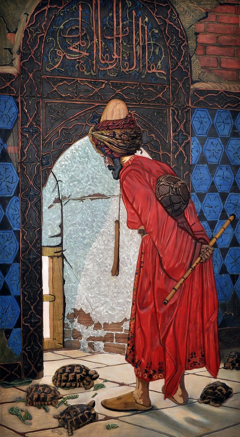 3d wooden art Handmade Construction time; 10 months Types of trees used; Walnut, Mahogany, Ebony, Oak, Linden, Maple, Ash, Padauk, Chestnut, Rosewood Techniques used; Wood carving, Wood inlay, Wood bristle saw cutting, Wood naht art, Wood Painting arts Orijin;Tortoise Trainer / Osman Hamdi Bey 19...