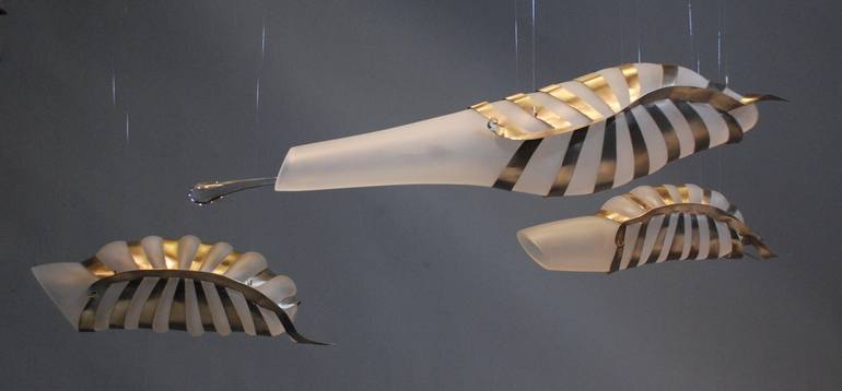 Arkhoïdes XIII - XIV - XV H. 190 mm, L. from 420 mm to L. 720 mm. Metal exoskeleton, frosted glass & polished metal - hanging