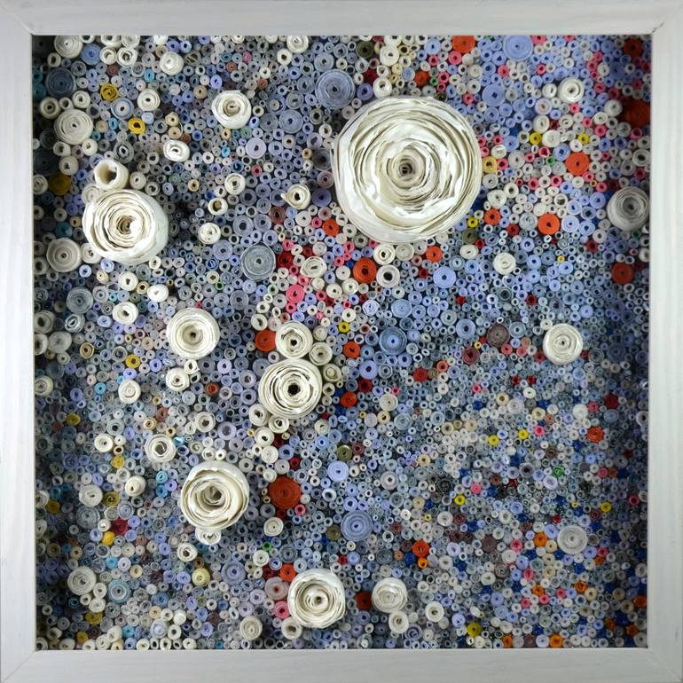 Inspired by abstract artist from the 1960’s l have produced a selection of works based on repetition and form. Using paper, resin and found objects, tamed and untamed. Shredded paper rolled and quilled into hundreds of individual coil and placed by hand into a box. resin applied to keep the coils i...