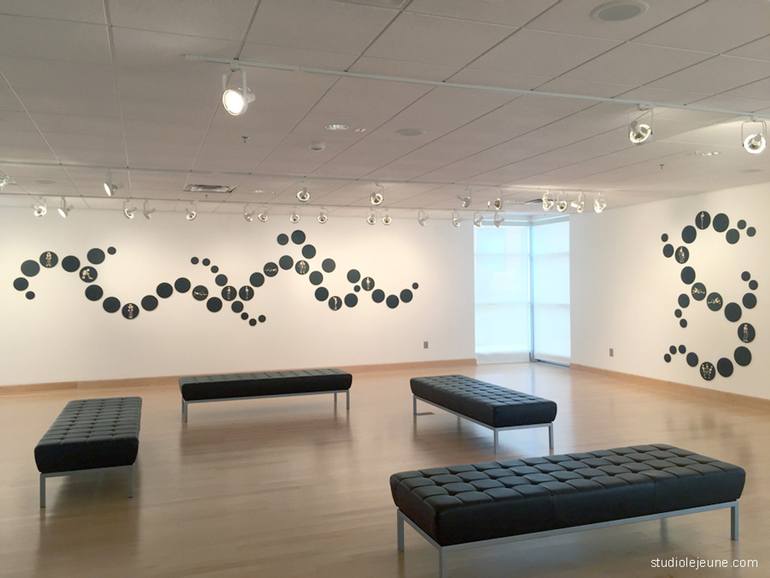 I create mixed media, cross-disciplinary art which frequently incorporates innovative digital elements. Commissions are accepted and I offer work on canvas, metal and vinyl. I originated a constellation style of wall installation in Atlanta in 2010. My signature large-scale wall installations often feature multiple smaller artworks of varying sizes combined to create elegant patterns on the wall. In 2006, I was inspired to experiment with circular artwork by the late artist Diane Hause who invited artists to exhibit work on recycled compact disks at her gallery in Atlanta which led to the origination of my “constellation” wall installation style by 2010. Many viewers comment that my organic installation work reminds them of a constellation. The patterns suggest a sequence in time, movement or a feeling. The work activates modern spaces and public sites. Overcoming is a recurrent theme in my work. The Flight series features the imagery of birds and other winged creatures overcoming gravity through flight and often appears in my wall installation work. The work combines paint and traditional fine art techniques with digital processes. The series stands for overcoming the forces in life that weigh us down, offering an uplifting message of transcending adversity.
