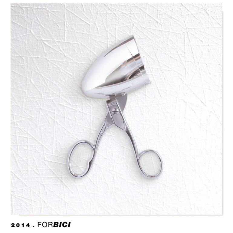Word game in Italian. An old headlight and a pair of scissors are the bizarre means of transport reinvented to "shed light" on the usefulness of a more conscious mobility so to "give a cut" to an unhealthy and harmful consumption.