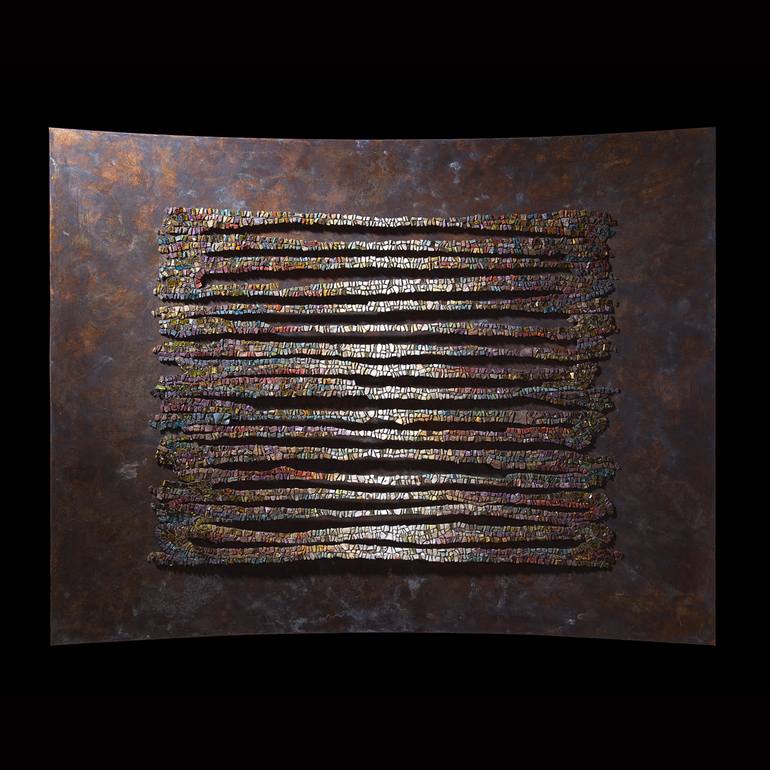 Opera contemporanea realizzata secondo l'antica tecnica del mosaico Romano-Bizantino utilizzando tessere in marmo, pietra e pasta di vetro su base di rame.
