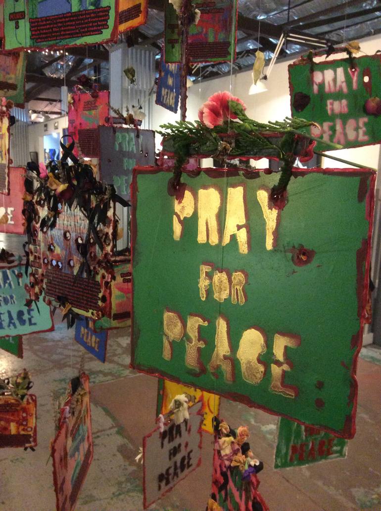 This art installation opened at 'Studio's on The Park' in Paso Robles California for the 'Guns in America' show, January 2017. It consists of 185 lunch box cut outs, each representing a school shooting from the 21st Century. An almost 500% increase from the previous 20th Century where in 100 years...