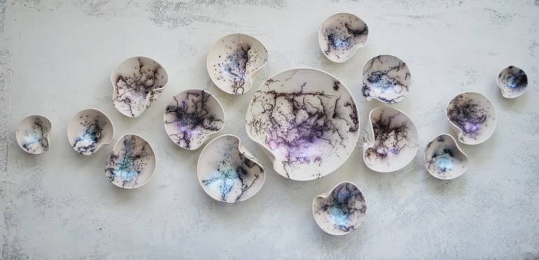 One of a kind Porcelain Wall Art - Organic, celebrates the natural interplay of light, form and texture in porcelain art form. Each wall mural is comprised porcelain elements handcrafted individually. Wall art arrives with a user friendly map-layout to ensure all elements are properly positioned, ...