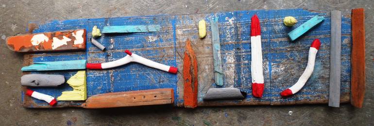 Wall sinstallation found painted wood