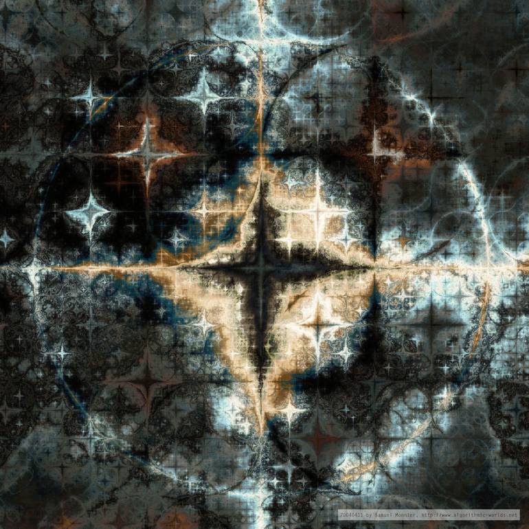 The theme of my work is complexity. Most of the natural objects around us display an amazing visual complexity. The bark of a trunk, a rocky cliff, the surface of a planet; they all show lush details and omnipresent fractal structures, which make their visual richness and beauty. The limitations of traditional art media have always made it difficult for artist to capture this characteristic feature of our visual experience. In contrast, the power of algorithmic and generative techniques allow producing highly elaborate abstract images. The main aim of my work is to explore this amazing richness of patterns and structures, in an attempt to capture the essence of visual complexity. A technique I have been developing for many years is called pattern piling. Copies of a simple pattern are created at various size scales and are merged together. More recent images are obtained by the iteration of certain conformal maps of the sphere having everywhere dense chaotic orbits. The common point of these techniques is that they yield images so complex that they could never have been imagined, let alone realized, by a bare human mind. Each of them forms a little abstract world, an algorithmic world, where shapes and colors are combined according to simple rules, yielding rich structures in which the observer's eye can wander and get lost. Please visit my website for recent works. .worlds