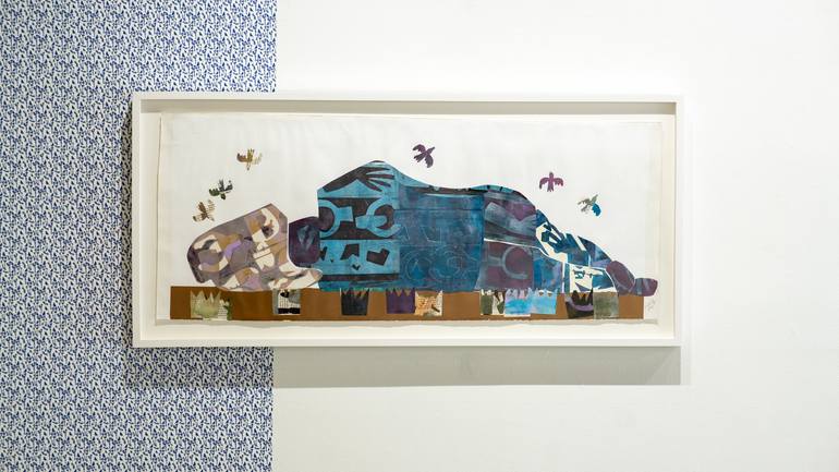 This artwork part of the series Let Me Be Magic, where I consider whether leisure and frivolousness is possible within the shadow of so-called Black Girl Magic. Pages from an instructional book on bird-watching are used to create motifs that represent unbounded freedom, structured guidance and the j...