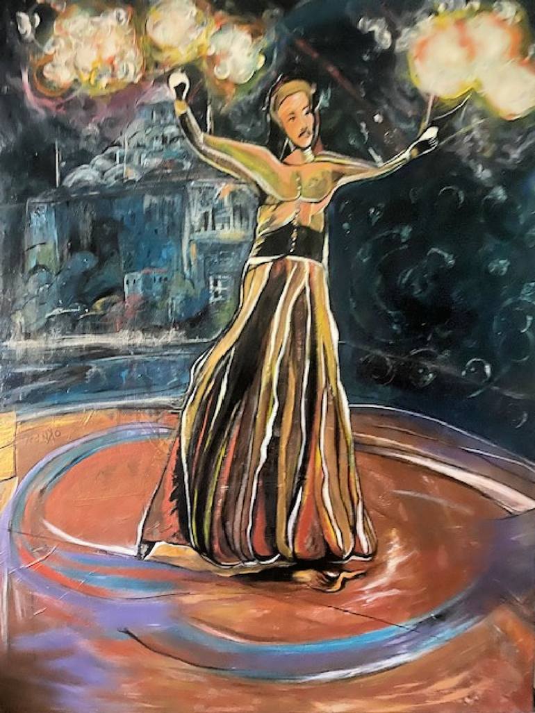 I am an culture admirer who likes to travel. I visited Istambul, Turkey last year and was impressed buy its culture. I visited this small theater for a show of ethnic dances and performances. This trip inspired me to paint this small but very interesting performance that showcase a little of this co...
