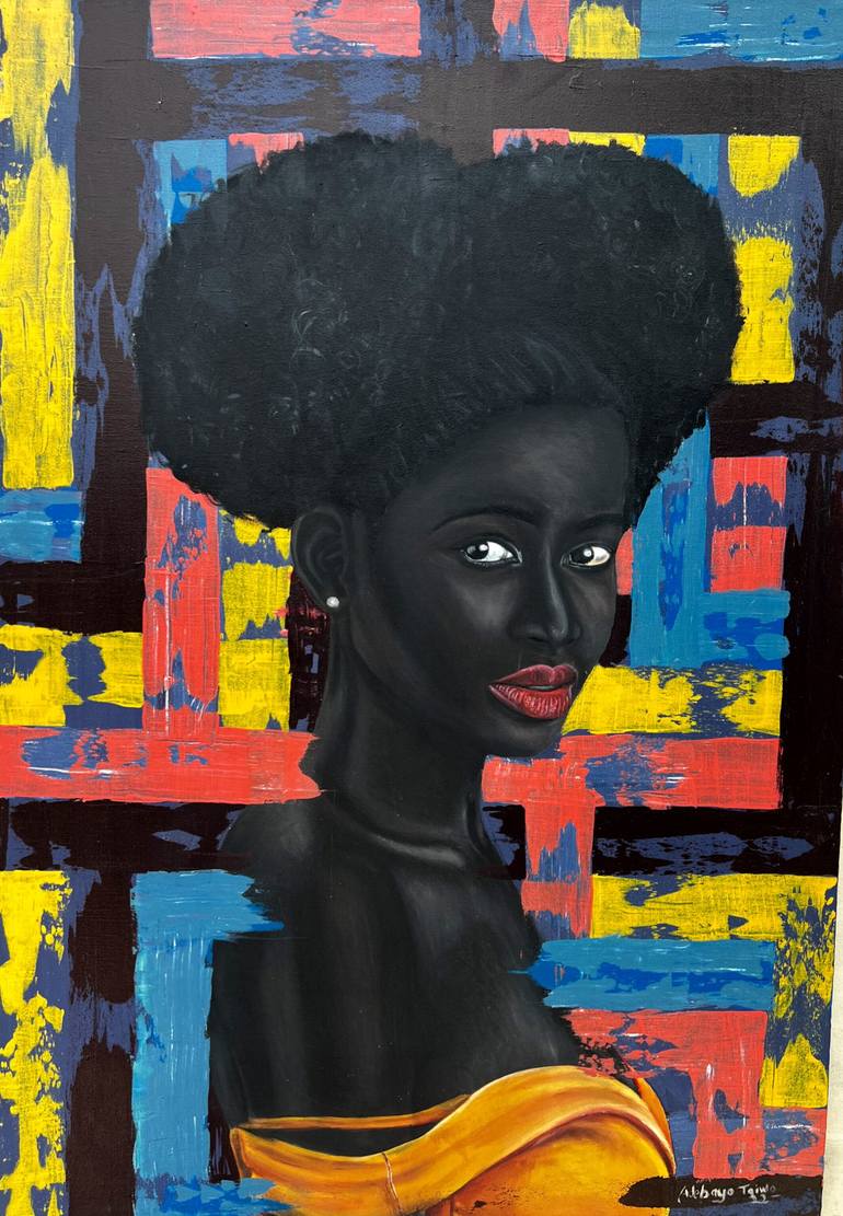 "Afrikan Radiance" is a testament to the beauty and strength of Black women. Through this artwork, I aim to challenge societal norms and celebrate the richness of African culture. The subject's confident gaze and radiant beauty inspire self-love and empowerment. Afro Hairstyle: Symbolizes Black pri...