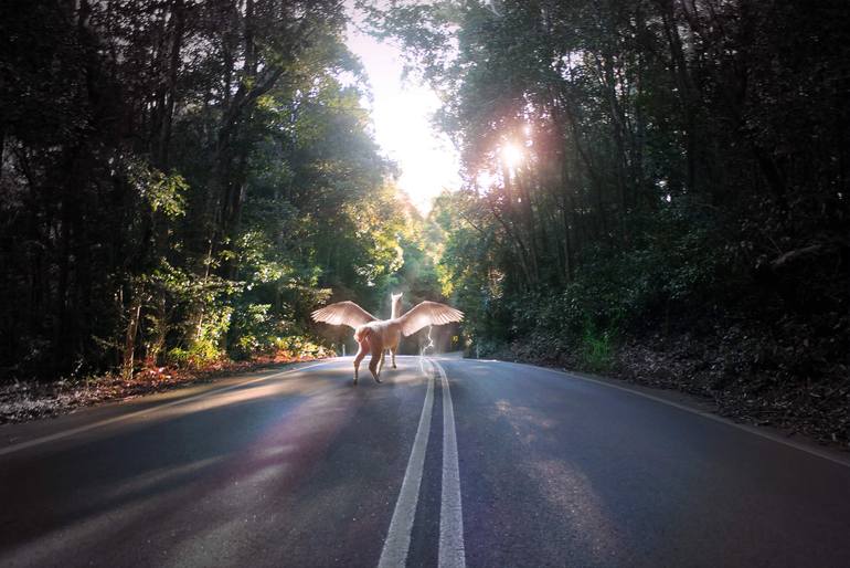This is a digital edit I created for my retouching brand and instagram in 2018. It's a mix of a bird photo an alpaca and a road in the Royal National Park. About the material it's printed on: This digital artwork print uses a special technology where the ink is infused into the metal (no worries ...
