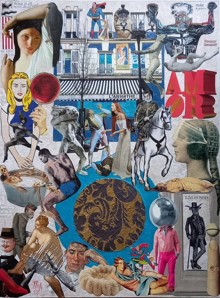 I work with mosaic and collage—two mediums that have long existed at the margins of contemporary art—and I treat them as living languages rather than techniques. I am interested in what happens when materials resist, fracture, and carry memory. Stone, paper, pigment, textiles, and found objects are not neutral for me; they arrive with history, weight, and tension, and I allow those qualities to shape the work. Mosaic entered my practice early on, not as ornament, but as structure and thought. By fragmenting and reassembling it, I began to expand it beyond its traditional architectural role, allowing it to function as image, object, and spatial presence at once. Over time, this led me to collage—not as a preparatory step, but as an equally rigorous practice. Collage offers immediacy and mobility, a way to engage directly with contemporary experience, perception, and the circulation of images. Fragmentation is central to my methodology. I cut, break, and recompose materials into systems where each element retains its individuality while contributing to a larger visual field. Meaning is never fixed. I want the work to remain open, layered, and unresolved—inviting the viewer to participate in its interpretation rather than consume a closed narrative. My process is intuitive and research-driven. I allow interruption, revision, and accumulation to guide the final form. Storytelling emerges through material, rhythm, and composition, not illustration. Personal experience intersects with social and political realities, creating works that reflect both inner states and collective conditions. I am drawn to permanence and instability at the same time. Mosaic carries weight, duration, and continuity; collage introduces fragility, speed, and change. I maintain the tension between these two practices deliberately. It is within this tension that my work finds its identity—one rooted in history yet responsive to the present. Each work I create is conceived as a fragment of an ongoing narrative, meant to be lived with over time and rediscovered through repeated encounters. Pelly Angelopoulou is a Belgian–Greek contemporary artist working with mosaic, collage, mixed media, and textile-based works. Her practice explores fragmentation, material memory, identity, and storytelling, combining traditional techniques with contemporary visual language.