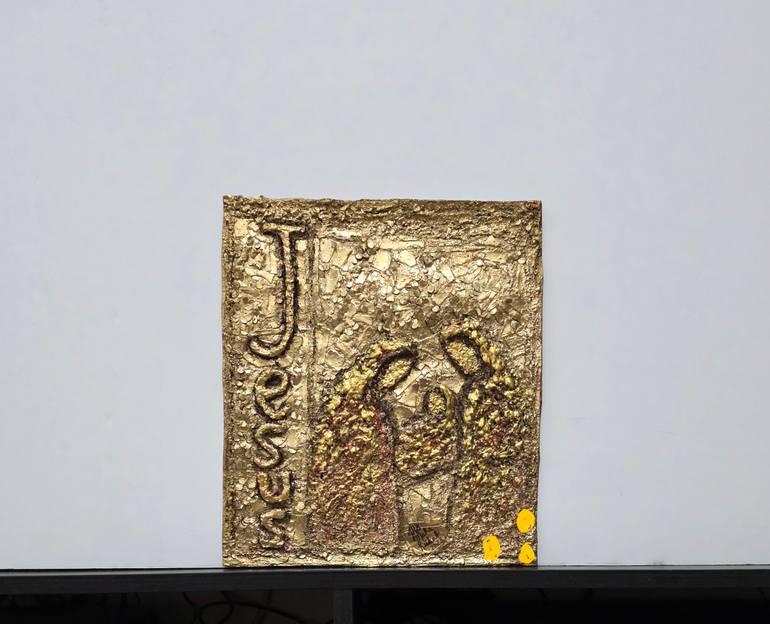 "And She Shall Bring Forth a Son, Jesus" is a mixed media artwork inspired by the Nativity. Echoing the gospel of Matthew 1:21, this piece serves as a reminder of the newborn King. The artist skillfully combines paper, cardboard and found objects to create a mosaic-like surface, imbuing the artwork...