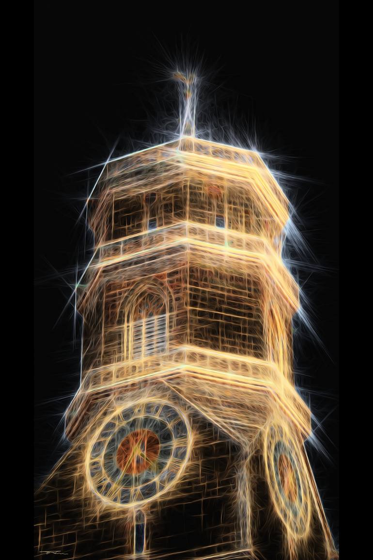 I manipulate the day and transform it to night, in order to pus in evidence the tower with the clock. The time. Because the time is the light. The time is shining into the dark... Our ignorance is the darkness and the time is warning us that we are not eternal. Another unexpected view of Stuttgart. ...