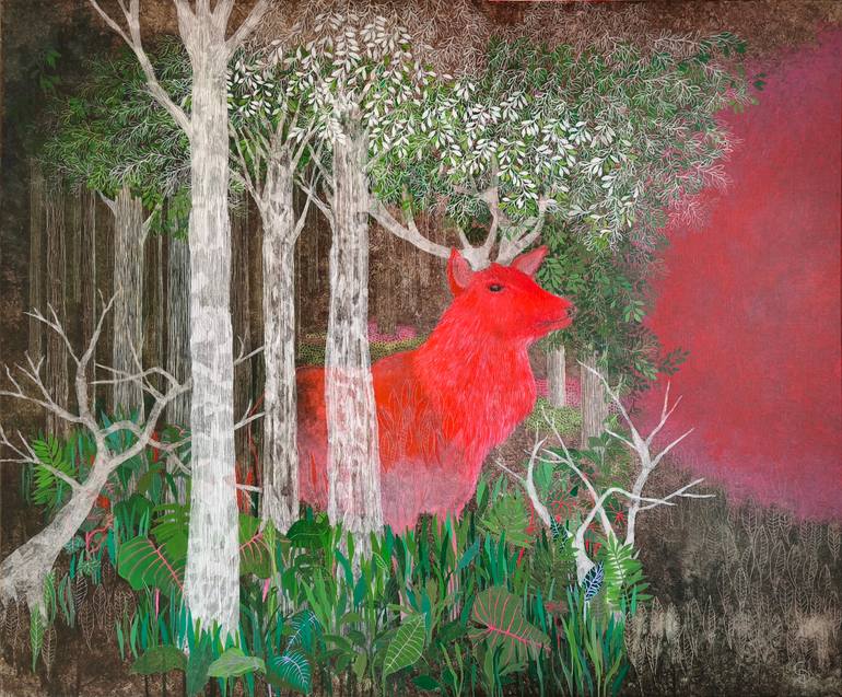 She is a french artist, born in Paris (France). She currently lives and works in Montargis, near Paris. Both realistic and dreamlike, Cécile Duchêne Malissin’s painting implies some introspection. Characters or animals are shown in abstract settings or lush vegetation. Her works exude a powerful attraction and conveys reverie. They are bushy, free, imaginative compositions and a poetic and singular universe. Her portraits express a meditative abandonment and the richness of an inner life. Childhood, is also tackled and evokes the loss of innocence as well as facing the brutality of the world. The viewer is caught by the serious and mysterious gaze of her characters: who observes who, in this disturbing face-to-face? Relations to nature, to oneself and to others are questioned here. Working on paper or canvas, mixing different techniques (acrylic paint, oil pastels, graphite lead, collage and sometimes sewing...), the works thus created carry in them both a delicacy but also a certain strangeness. The relationship to the body and its fragility are evoked by transparencies which is conferred by a subtle game of collages mixed with acrylic. Memory, forgetfulness, transience of existence are suggested.