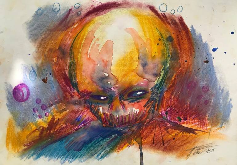 Astralgedanken entstand im Jahre 2015. Benjamin Iddouche benutzte hier für Farbstifte und Aquarellfarben, sowie Pastellkreiden.