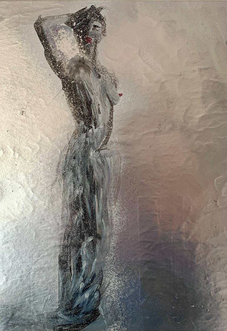 “ The innovative use of materials such as enamels, makeup, and spray paint on a fashion photography base creates a work that merges seemingly distant worlds: that of contemporary glamour and classical mythology. This experimental technique not only destabilizes the original image but transforms it i...