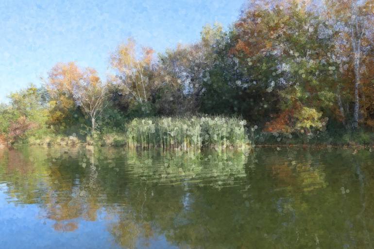 Impressionistic Pointillist Expressions of landscapes captured in photography of an audacious season overpainted with digital paints that produce lush marbling and reproduce at huge sizes exceptionally well. May you find the same feng shui flow nature of peace intended in your environment. Jump in. ...