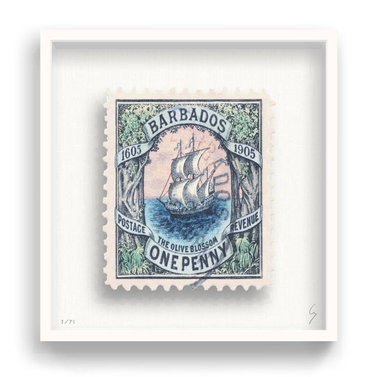 Years spent refining the collection, Gee has curated a selection of postage stamps from around the world. The postage stamp, invented in England in 1840, revolutionised global communication. All nations quickly adopted the concept making it their own. As the first form of mass media graphic design, each stamp tells its own cultural narrative, celebrating everything from commerce and innovation to art and agriculture. Gee spends hours searching for each stamp, often going through thousands before finding the one that will fit into the rest of the collection. The 100-year-old miniature hand engraved artwork is then enlarged and digitally revised by Gee, creating a fresh contemporary take on the original. Finally, the stamp is printed on 350gsm G. F. Smith card, cut out, and finished by hand.