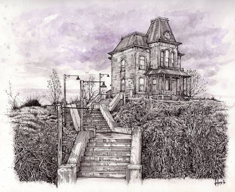 What/who inspired the work? This piece was inspired by the eerie atmosphere and iconic imagery of the Bates Motel from Alfred Hitchcock’s Psycho. The fusion of the watercolor’s softness with the sharpness of ink echoes the psychological tension of the story. It aims to capture the unsettling duality...