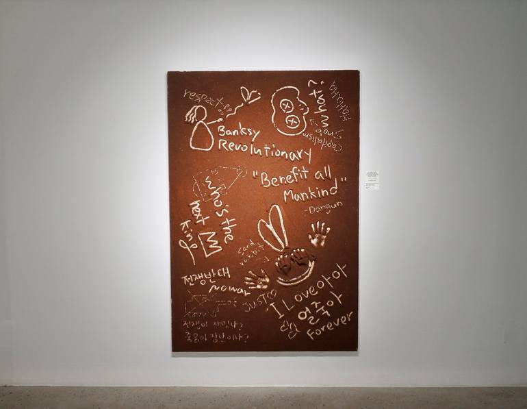 "Island", the work of artist Ha Sa An, is a work that reinterprets the soil of 'ceramic' in a new way of expression by melting the traces of the artist's life and thoughts. The material that dismantled ‘ceramic’ was reborn as a creation that connects tradition and modernity on the canvas through a traditional creative tool (hand). The name was coined because the 'colored sand' stretched out on the canvas resembles a floating "island". It is a work presented in a formative language through images. In particular, due to the nature of the work that can feel the texture, even a child who does not know how to write or a blind ear can appreciate the work by touch, which lowers the threshold of art. [message in art] The "Island" series consists of flat and installation works such as 'We what peace', 'Love&Happy', and 'Love your self', and can be interpreted in various ways depending on the relationship between materials and expression methods and content and nature. The ‘colored sand’ used as a material is a symbolic material that reinterprets ‘soil’, the essence of ‘ceramics’, in a modern way. In particular, sand, which is the middle stage of weathering in the order of stone, pebbles, sand, soil, and soil, symbolizes 'humans' who are broken and broken in order to reach the state of 'soil'. Therefore, the artist's colored sand is a symbolic material that captures the colorful human life, and is used as a medium to contain subjective meaning in the work. An artist's record is a work that records real stories of today and the past in letters and images. The writer's text is a live work that communicates with mankind through various languages. In particular, the shadows recorded as the length and position change through the natural light of the sun travels around, beyond communication between the work and the audience, and as soil, which was once part of nature, realizes an organic relationship through light. It is a thoughtful work that makes you realize the flow of time through the texture of the soil and the sense of speed felt in the expressed message, repeating deepening and shallowing, widening and narrowing through the texture of the rough surface and through the shadows.