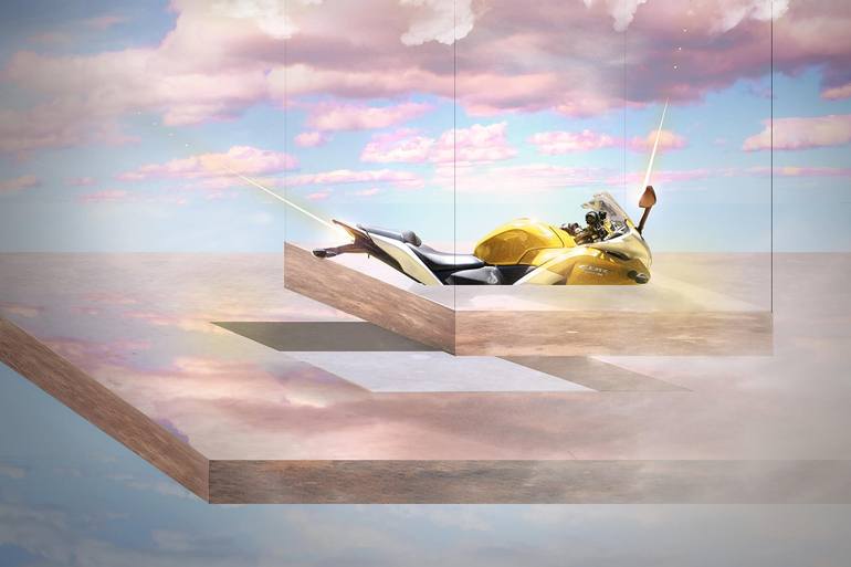 This is a photo of my bike and some landscapes I've manipulated to end up being a bike stuck in the ground. About the material it's printed on: This digital artwork print uses a special technology where the ink is infused into the metal (no worries about people pulling the sticker off!) I chose a m...